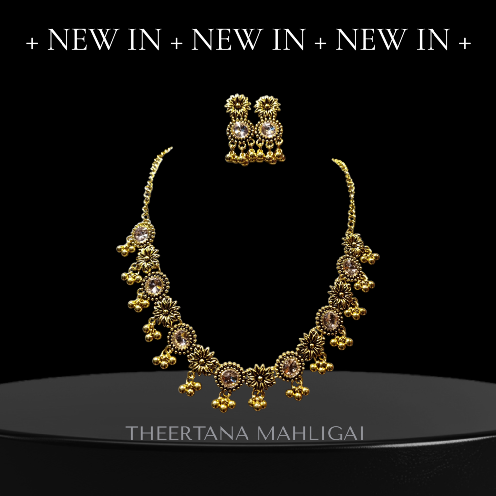Anglo Indian Flower Multi Color Stone Chain + Earrings
