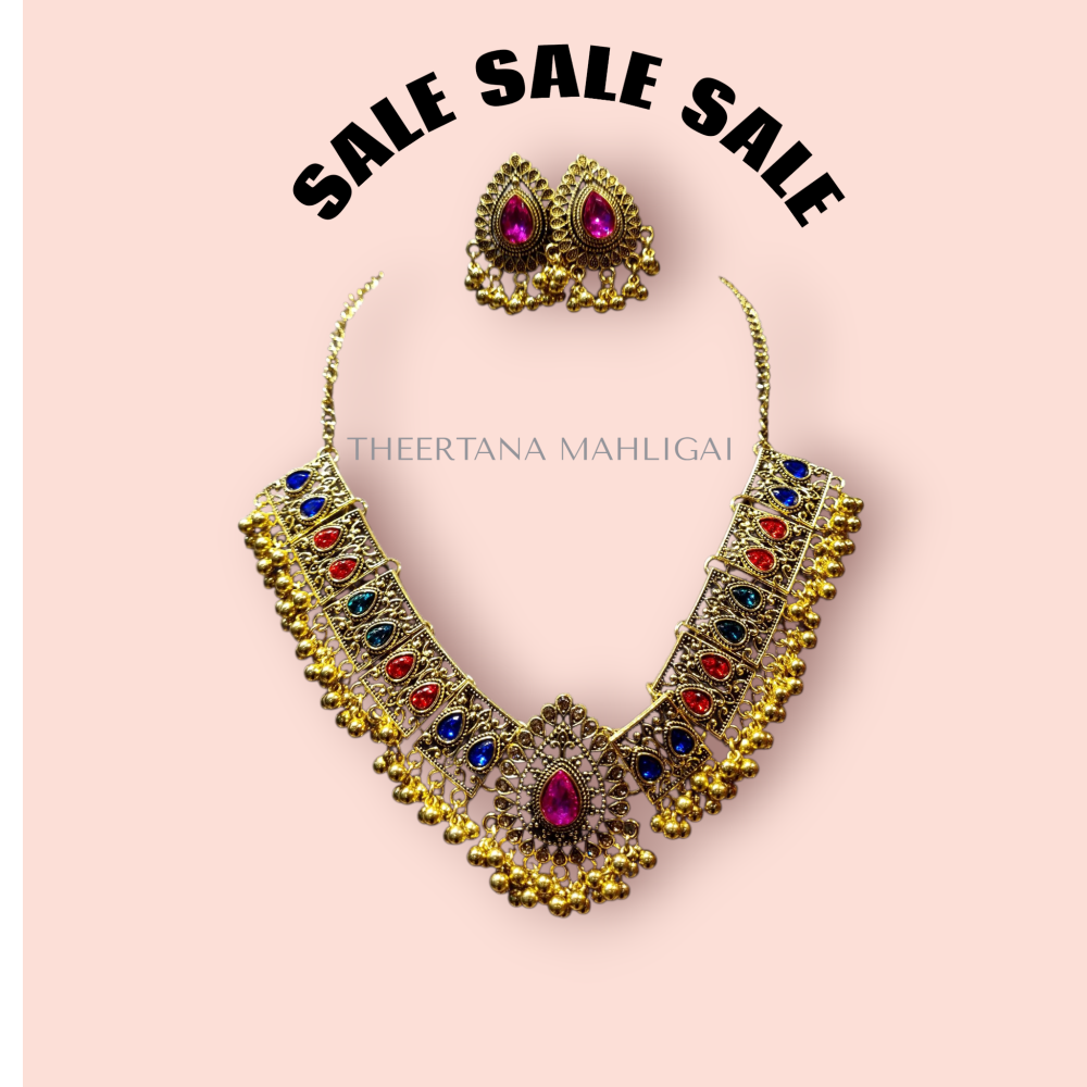 Arabian Multi Color Pink Stone Chain with Gold Drops